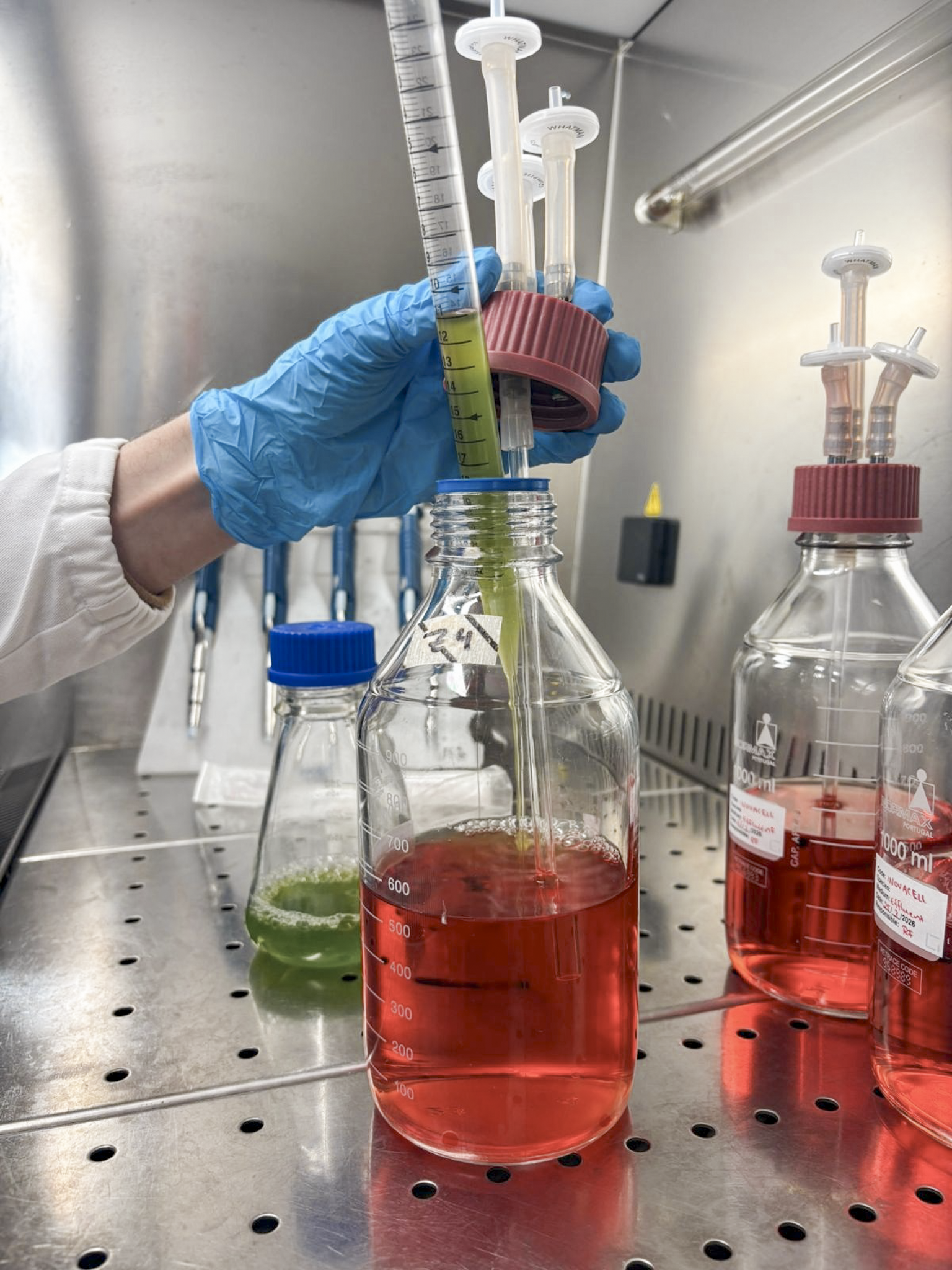 O efluente do cultivo de células de peixe, que ainda é rico em nutrientes, pode ter uma nova vida em vez de ser descartado, está a ser utilizado para o cultivo de microalgas.