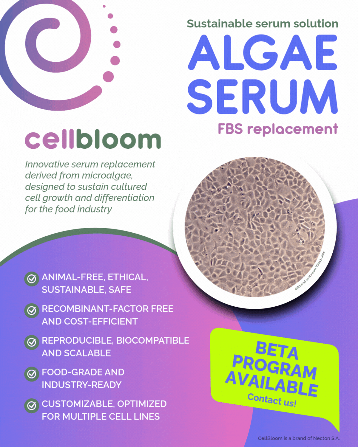 We’re thrilled to unveil the prototype of CellBloom, an innovative serum replacement derived from microalgae, designed to bring ethical, consistent, and scalable innovation to cellular agriculture and biotech. This prototype is being developed through the INOVACEL Project, highlighting our commitment to sustainable R&D.